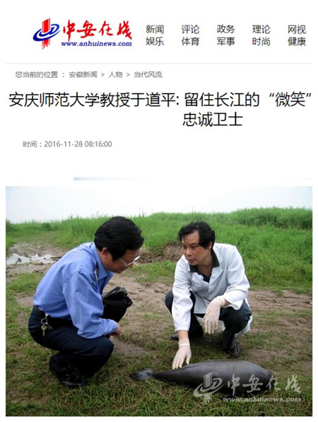 中國長江豚類易地保護開拓者之一,在安徽實施江豚捕撈第一人,我國用深水圍網(wǎng)救護江豚并順利繁殖小江豚的第一位知名鯨類專家,——安慶師范大學(xué)教授于道平從事江豚保護30多年,腳跡踏遍大半個長江流域,是一名生態(tài)保護的忠誠衛(wèi)士。2016年度全國水生動物保護海昌技術(shù)獎獲得者。